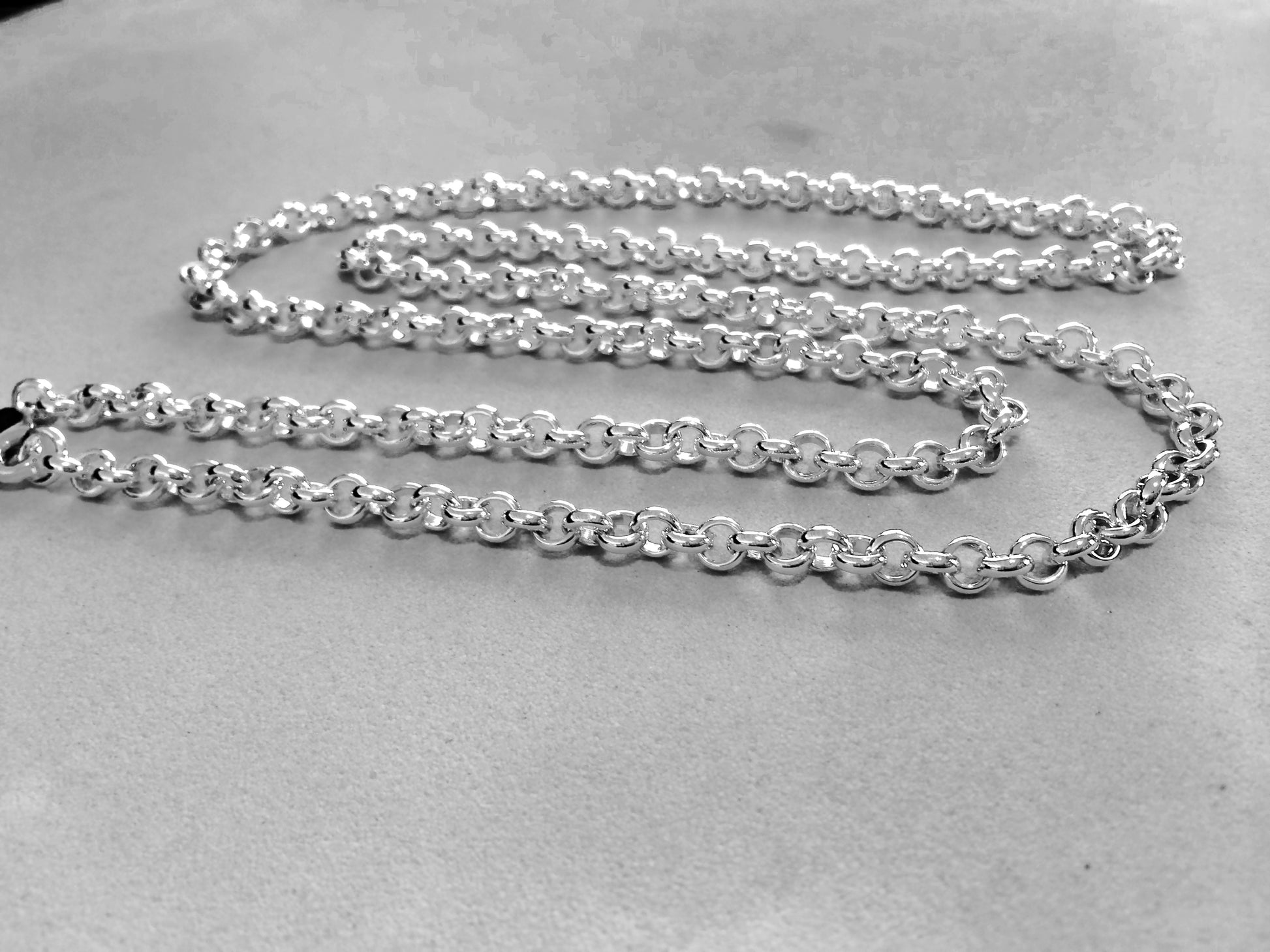 The Belcher Chain pictured is created in our Recycled Sterling Silver, fully soldered, with 5mm inner diameter links.